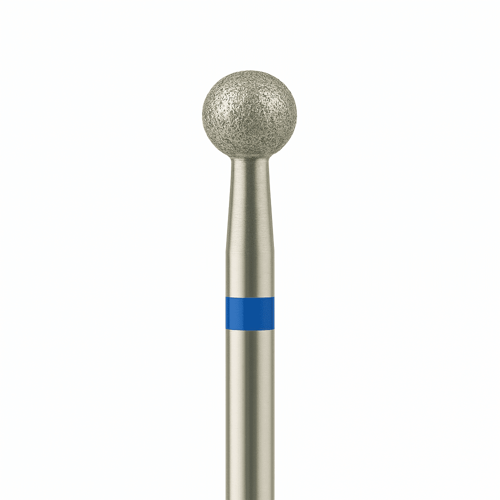 fresa de bola de 4,0 mm con banda azul está especialmente indicada para tratar zonas más amplias, como la eliminación de cutículas secas, piel queratinizada o pterigión en áreas más grandes. Su forma esférica proporciona un trabajo suave y preciso, ideal para técnicas de manicura rusa, combinada o en seco.