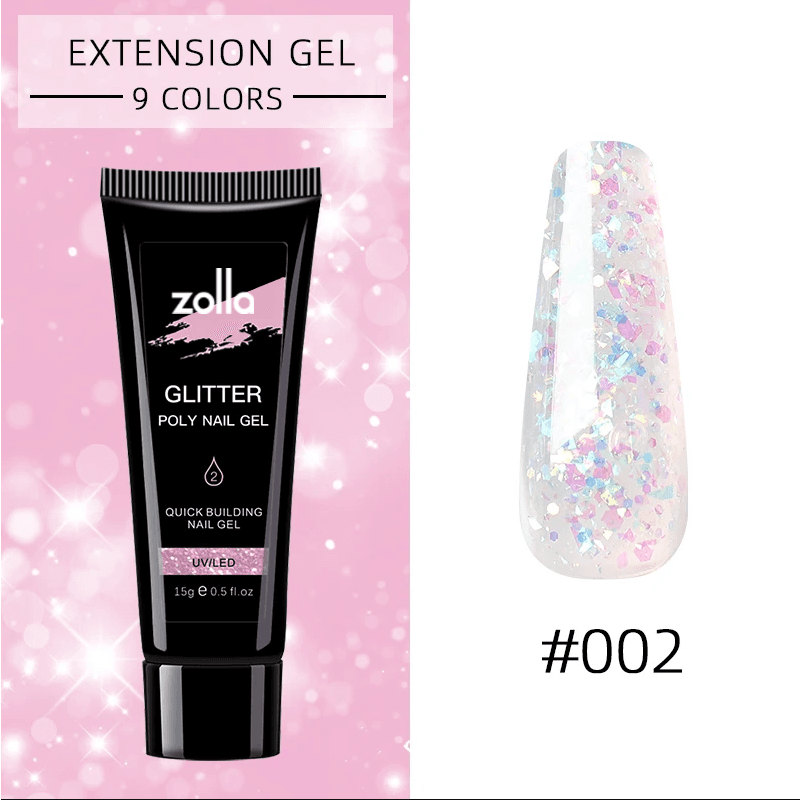 ¡Haz que tus uñas brillen como nunca con el Polygel Zolla Glitter 15g 02!